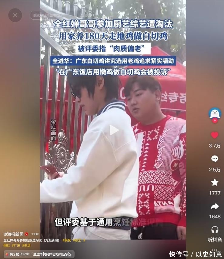 奥运冠军全红婵的哥哥全进华参与厨艺类综艺节目被淘汰,本应是寻常之事,但因全部白切鸡激勉全网热议,掀翻山地风云。