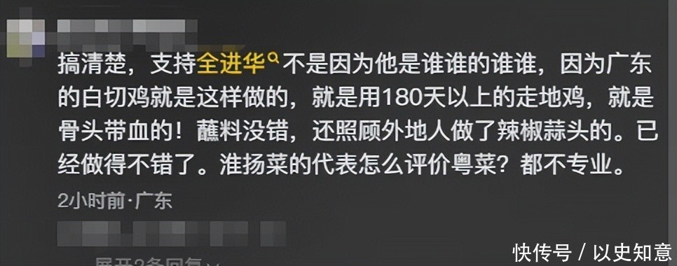节目播出后,“全进华白切鸡被批老,评委不懂广东白切鸡”飞速登上热搜。