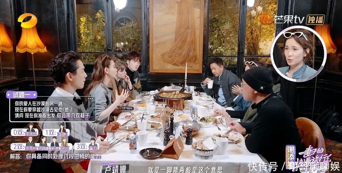 事情的缘故是在餐桌上全球玩的一个游戏也不错看出来这是节目组的安排毕竟仅仅看全球吃吃喝喝莫得什么输出亦然莫得太大看点。